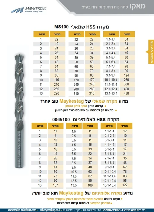 מקדח HSS שמאלי