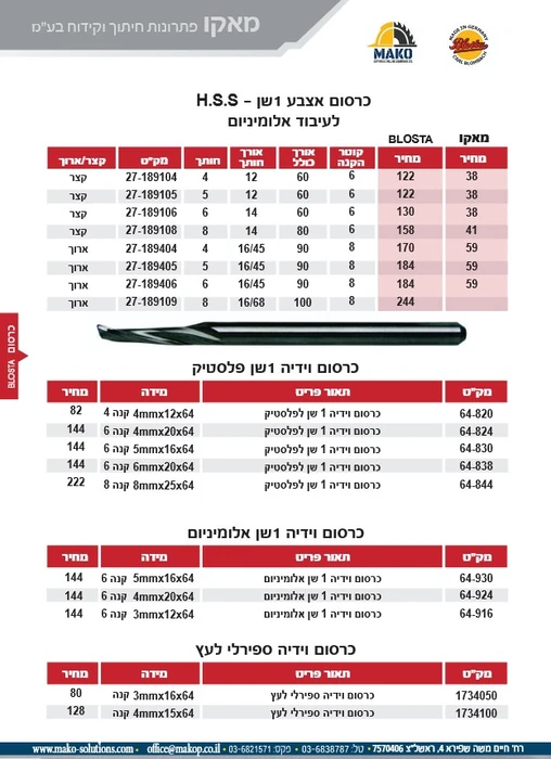 כרסום אצבע 1 שן H.S.S לעיבוד אלומיניום , פלסטיק ועץ