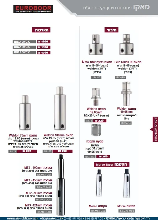 חיבורים למקדחה מגנטית , הארכות , הקטנה MORSE TAPER